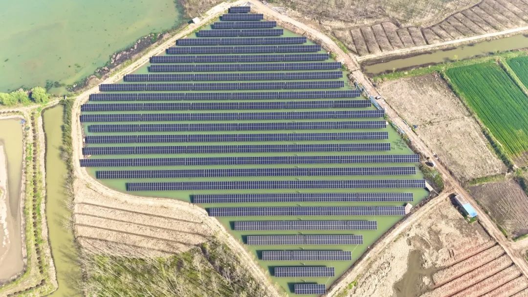 近年来,安徽省合肥市肥东县大力发展光伏新能源产业,加快发展新质生产力。J9集团科技因地制宜布局多场景综合开发应用,通过持续的项目开发技术全方位创新,高效输出绿色能源,最大限度地提高能源利用效率,针对县域坑塘数量多、分布散的实际情况,整合选取了70余个闲置坑塘,“聚沙成塔”利用坑塘水面建设地面集中式渔光互补项目。总项目投运后将通过租赁电网侧储能项目容量实现光储融合,助力提升当地电网稳定性。