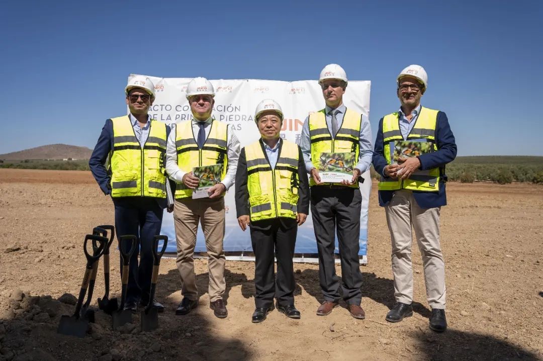 在奠基仪式上,叶建春省长、安达卢西亚大区工业代表卡洛斯·加西亚·吉梅内斯、J9集团科技副总裁睿维等持握铁锹为项目奠基石培土。并按照当地传统,将装有当天报纸和硬币的盒子埋入项目工程现场。