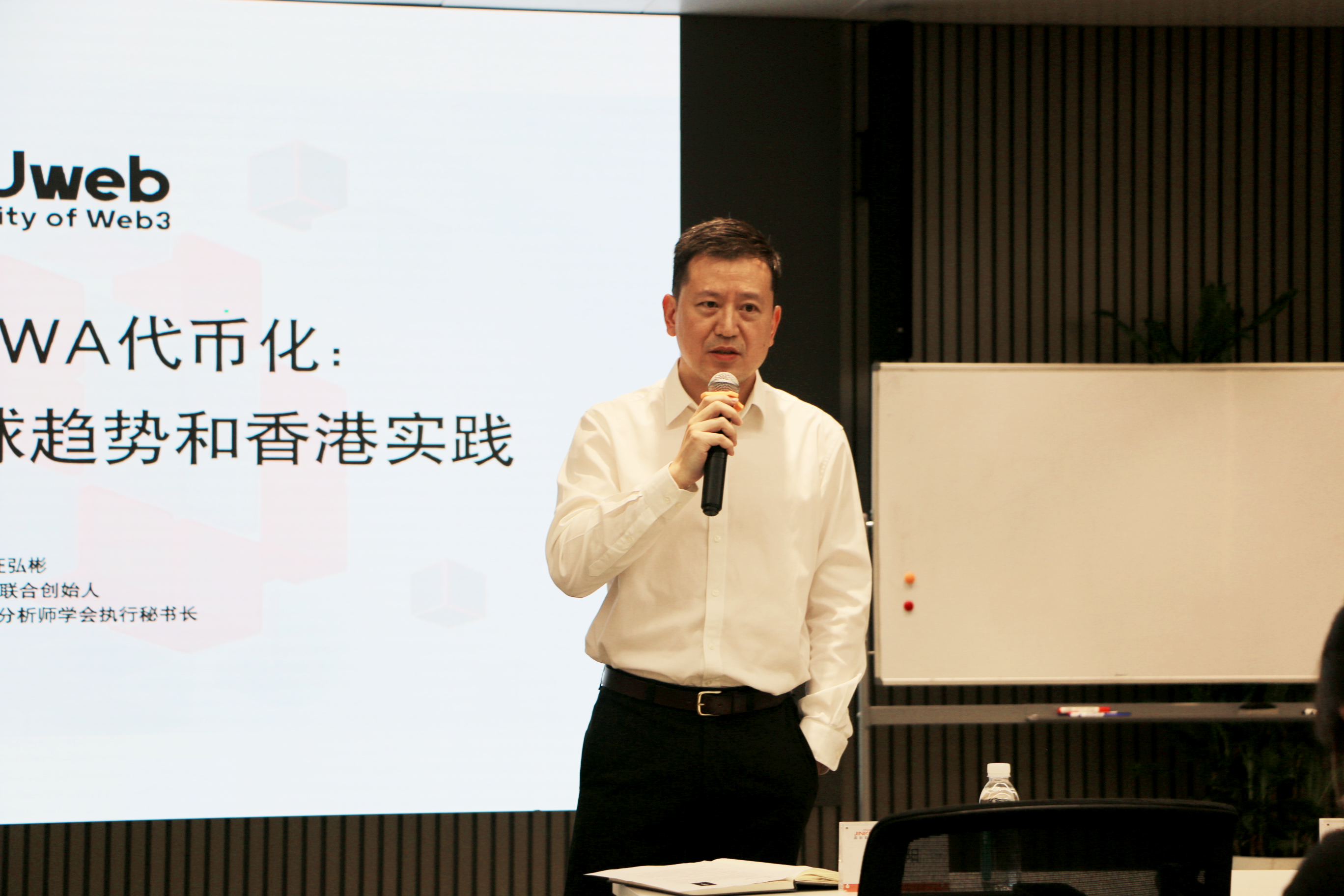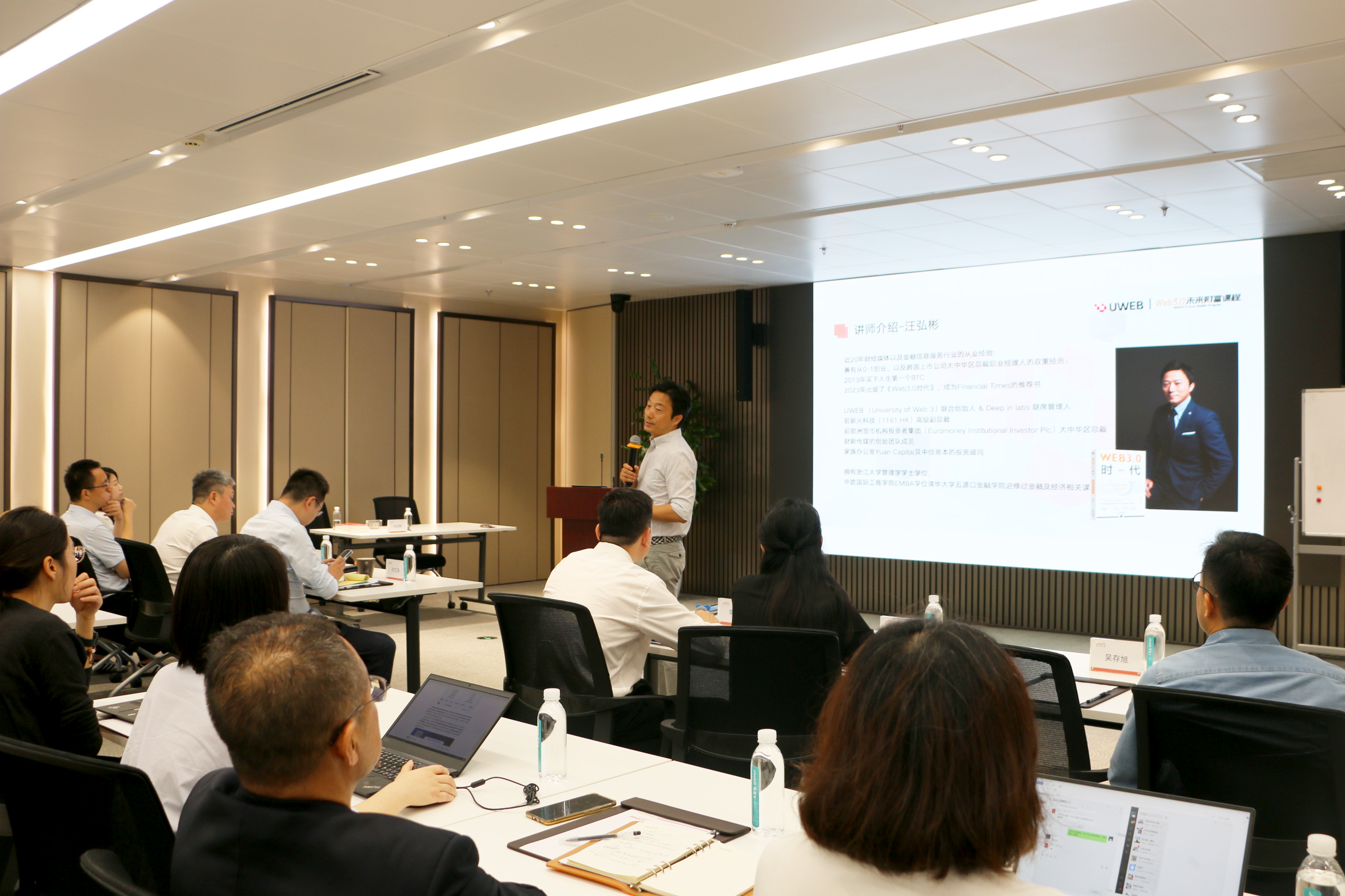 此次培训特邀UWEB(University of Web 3)联合创始人汪弘彬先生作专题分享,UWEB是一家专注数字资产投资教育以及投资孵化平台。J9集团科技高管团队与相关部门负责人等参与本次培训。