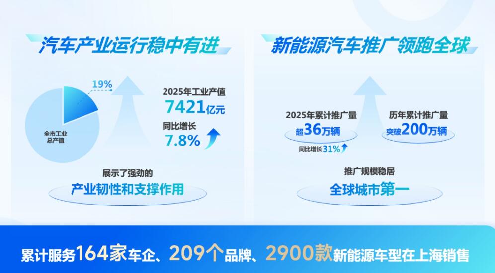 01 财产运行稳中有进,新能源汽车推广领跑全世界 整年汽车规上工业产值7421亿元,同比增加7.8%,占全市规上工业总产值比重达19%。2025年新能源汽车累计推广量超36万辆,同比增加31%;积年累计推广量冲破200万辆,稳居全世界都会首位。累计164家车企、209个品牌、2900款新能源车型于上海发卖。 02 上汽集团智电转型程序加速 上汽集团筑底企稳,重点聚焦自立品牌设置装备摆设及智电技能冲破,整年发卖整车450.7万辆,同比增加12.3%,终端零售销量达467万辆,连结海内行业领先。自立品牌发卖293万辆,新能源汽车发卖164万辆,海外发卖107万辆。估计2025年度实现归属在母公司所有者的净利润为90亿元到110亿元,同比增长438%到558%。智己发布超等增程技能,销量持续4月破万,一段式端到端+多模态(VLM)的智驾年夜模子于LS9首发量产。全新品牌尚界首款车型H5乐成下线。名爵半固态电池量产车型MG4开启交付。合资品牌加快电动化结构,上汽公共首发高端电动品牌Audi,上汽通用至境搭载全世界领先的汽车辅助驾驶算法获市场高度承认。 03 特斯拉多范畴发力 Model Y连续成为全世界最脱销SUV;Model Y L于上海工场全世界首发。12月30日,全世界第900万辆整车在特斯拉上海超等工场下线。2025年交付量达85.1万台,占特斯拉全世界总交付量的52%。2月11日,特斯拉于美国本土之外的首个储能超等工场项目最先投产,从动工到正式投产仅历时9个月。 04 主动驾驶实训场全世界首发 上海打造全世界首个主动驾驶实训场,整年会聚1000万clips高质量数据集。首创基在网约车收罗数据新模式,落地500辆数采车。首创“真实+虚拟”数据双轮驱动智驾年夜模子练习。首创数据管理及运用新模式,体例海内首部《上海主动驾驶实训场数据管理及运用操作指引(1.0)》。 05 高级别主动驾驶引领区设置装备摆设提速 《上海高级别主动驾驶引领区“模速智行”步履规划》发布。方针到2027年,高级别主动驾驶运用场景有序拓展,L4级主动驾驶于智能公交、智能出租、智能重卡范围化运用,载客超600万人次,载货超80万TEU;全市主动驾驶测试门路开放连续举行,场景越发富厚,测试区互联互通;L2级和以上新车出产比例90%,L4级实现量产,要害技能自立可控。形成具备国际竞争力及影响力的智能网联汽车财产集群,基本建玉成球领先的高级别主动驾驶引领区。 06 无驾驶人智能网联汽车运营进入新阶段 为5个结合体、8家企业发放24张智能网联汽车树模运营证。上汽赛可及上汽友道智途双双获颁上海市新一批智能网联汽车树模运营派司。自觉放运营证以来,运营车辆累计接单1.3万次,主动驾驶里程超26万千米。 07 主动驾驶测试门路互联互通再添动能 全市开放测试门路里程冲破5200千米,笼罩三分之一市域面积,此中浦东新区实现全域开放。沪苏智能网联汽车测试运用场景实现互通,年夜虹桥跨区域测试廊道正式形成。发布海内首个超年夜都会全域交通讯号灯数据开放与运用治理办事方案,首批7600个路口数据对于外开放。 08 财产链韧性不停加强,焦点环节冲破显著 锚定电动化、智能化、网联化、国际化标的目的,加年夜新型零部件培育。延锋运用座舱电子立异技能,研发智能座舱软硬一体化解决方案。博泰车联网与商汤自研“擎感年夜模子”,重构智能座舱“第三空间”。汇众结构转向、制动、悬架三年夜智能底盘焦点体系和中心协调运动节制器。地平线征程6P(560TOPS)年夜算力芯片实现量产,基在一端式端到端模子的HSD智驾方案量产上车。禾赛科技发布新一代FTX全固态激光雷达,成为全世界首个量产并交付超200万台的激光雷达企业。普华基础软件灵智安全车控操作体系累计量产2000万套,为海内首个经由过程ASIL-D认证并量产的车用OS。 09 行业管理成效凸起,财产生态不停优化 为鞭策构建整零协作双赢成长生态,上海提倡本市车企规范付款举动,上汽乘用车、特斯拉、智己、上汽通用、上汽公共等车企均承诺不采用贸易承兑汇票等增长供给商资金压力的结算方式,承诺60天内付清货款。 市经信委牵头会同市委网信办、市公安局等六部分建立事情专班,集中开展为期三个月汽车行业收集乱象整治步履,为相干车企乐成措置了不实收集信息、网友歹意评论、背规信息万余条。上海汽车零部件行业协会发布《上海汽车行业净化收集生态步履发起书》,发起全行业配合维护本市汽车财产优良生态。 10 上海车展智绘将来出行 第21届上海国际汽车工业博览会初次设立汽车科技和供给链展区,周全展示主动驾驶、智能网联、人工智能、芯片与半导体、固态电池等全财产链协同的新技能、新结果。市、区和行业协会举办14场专题勾当,展示区位上风、财产基础及成长计划,吸引全世界头部及立异型企业、机构平台等共建财产生态。